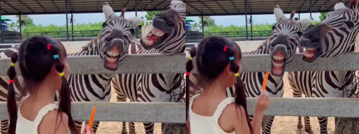 ผู้ใช้ TikTok @nirinpunrada ได้เผยภาพตอนไปเที่ยวสวนสัตว์ที่อยุธยา หนูน้อยกำลังเตรียมแครอตป้อนให้ม้าลายกิน ในระหว่างที่กำลังจะป้อนอาหาร หนูน้อยคนนี้ต้องมาเห็นปฏิกิริยาของม้าลายแต่ละตัว สงสัยคงหิวจัด เลยต้องทำปากแบบนั้นใส่ ถึงกับขำไม่หยุด จนป้อนอาหารต่อไม่ได้เลยทีเดียว
