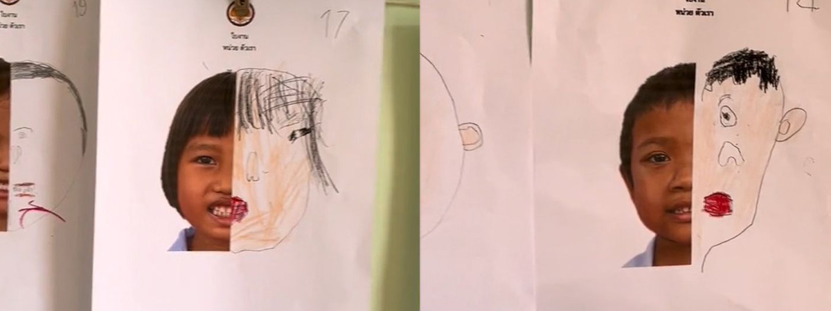 เมื่อครูศิลปะให้นักเรียนวาดรูปครึ่งหน้าของตัวเอง ผลงานที่ออกมานั้น... ทำครูกลั้นขำไม่อยู่