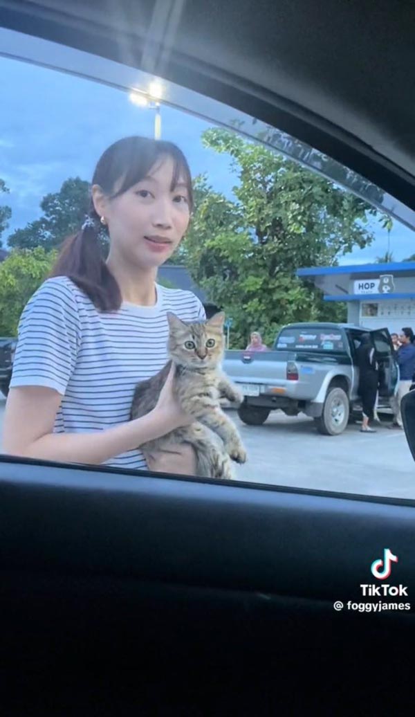 ขึ้นชื่อว่าคุณแฟนแล้ว เรียกได้ว่าบางครั้งแค่มองตาก็รู้ใจ คำถามเป็นนัย ๆ อาจหมายถึงไม่ต้องการคำปฏิเสธ อย่างล่าสุด (31 สิงหาคม 2566) ผู้ใช้ TikTok @foggyjames ได้โพสต์คลิปเจอน้องแมวลายสลิด ตากลมแป๋ว ถูกทิ้งอยู่กลางปั๊มน้ำมันระหว่างทางไป จ.ยะลา