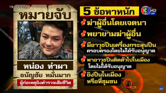จากข่าวสะเทือนขวัญที่มีสารวัตรตำรวจทางหลวงถูกยิงเสียชีวิต 1 นาย และยังมีรองผู้กำกับทางหลวงบาดเจ็บอีก 1 นาย โดยมือปืนคือ หน่อง ท่าผา ลูกน้องคนสนิทของ กำนันนก คู่กรณี แต่ตำรวจยังไม่พบตัวผู้ก่อเหตุทั้ง 2 รายนั้น
