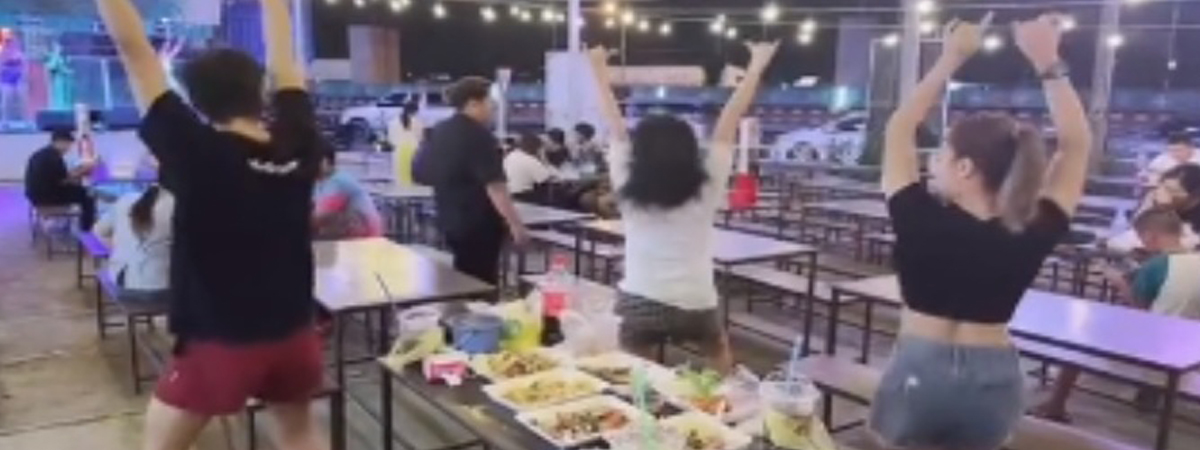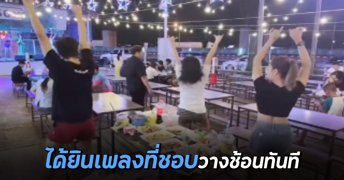 ผู้ใช้ TikTok @immie1965 ได้เผยภาพตอนไปกินข้าวกับเพื่อนที่ร้านหนึ่ง สั่งของกินมาเต็มโต๊ะ กำลังจะใช้ช้อนตักอาหาร อยู่ ๆ นักร้องที่ร้านดันร้องเพลงที่ชอบขึ้นมา วางช้อนแล้วลุกขึ้นเต้นกันทั้งแก๊ง แดนซ์ยับในชนิดที่ว่าไม่แคร์คนในร้านเลยทีเดียว กลายเป็นไวรัลที่เรียกเสียงฮาถล่มทลายในตอนนี้