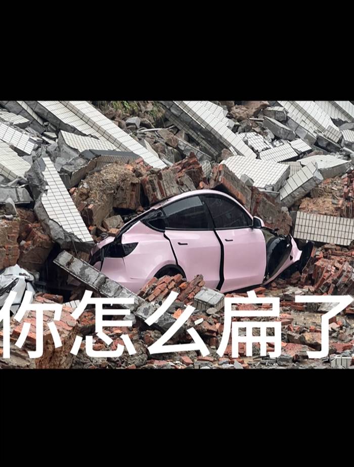 ในครั้งนี้เธอจึงตัดสินใจจอดรถไว้เฉย ๆ ในที่ปลอดภัย แต่ในวันที่ 8 กันยายน ที่ผ่านมา อยู่ ๆ ก็มีข้อความแจ้งเตือนเด้งในโทรศัพท์มือถือของเธอ เตือนว่ารถ Tesla ของเธอนั้น มีสัญญาณเตือนภัยดัง ประตูถูกปลดล็อก กระโปรงหน้าและหลังรถไม่ได้ปิด ซึ่งเมื่อหญิงสาวมาถึงจุดที่จอดรถไว้ก็ได้แต่อึ้งงั้น เพราะกลายเป็นว่ารถสีชมพูของเธอถูกกำแพงโค่นลงมาทับ บดขยี้จนกลายเป็นซาก