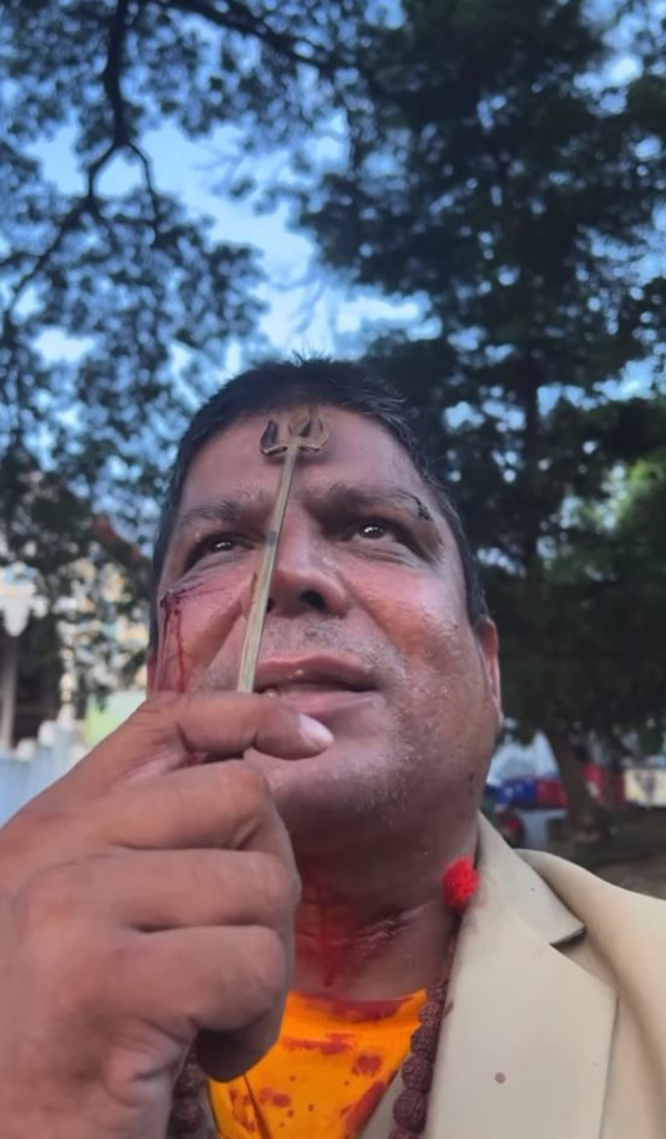 จากนั้นตนขี่รถจักรยานยนต์กลับไปที่ห้องพักที่ใกล้ลานอนุสาวรีย์ครูบาศรีวิชัย เมื่อเปลี่ยนเสื้อผ้าเสร็จก็กำลังจะเดินทางกลับบ้านที่ อ.เชียงดาว จังหวะที่มาถึงด้านหน้าสำนักงานตำรวจท่องเที่ยว เจอรถเก๋งนิสสันคันเดิมปาดเข้ามาในเลนของตนอีก ซึ่งตนก็หักหลบทัน ทำให้เกิดความโมโห เพราะเหตุเกิด 2 ครั้งแล้ว จึงจอดรถใช้หมัดต่อยไปจนเค ร้อยล้าน ล้มลงกับพื้น แถมพูดกวนโมโห บอกว่าในรถมีปืน ทำให้เกิดความโมโหจะเข้าทำร้ายอีก แต่ว่าคู่กรณีวิ่งขึ้นรถแล้วขับขึ้นไปจอดด้านหน้าลานอนุสาวรีย์ครูบาศรีวิชัย แล้วก็ได้หยิบมือถือมาถ่ายคลิป ก่อนจะถือมีดมาจะเอามาแทงตน เมื่อเห็นว่ามีอาวุธ ตนจึงเดินมาที่รถและขี่ออกไป ส่วนเรื่องที่จะขอโทษเรื่องสำนึกผิดนั้น ถ้าเขาไม่ทำพฤติกรรมแบบนั้นก็คงไม่ทำ