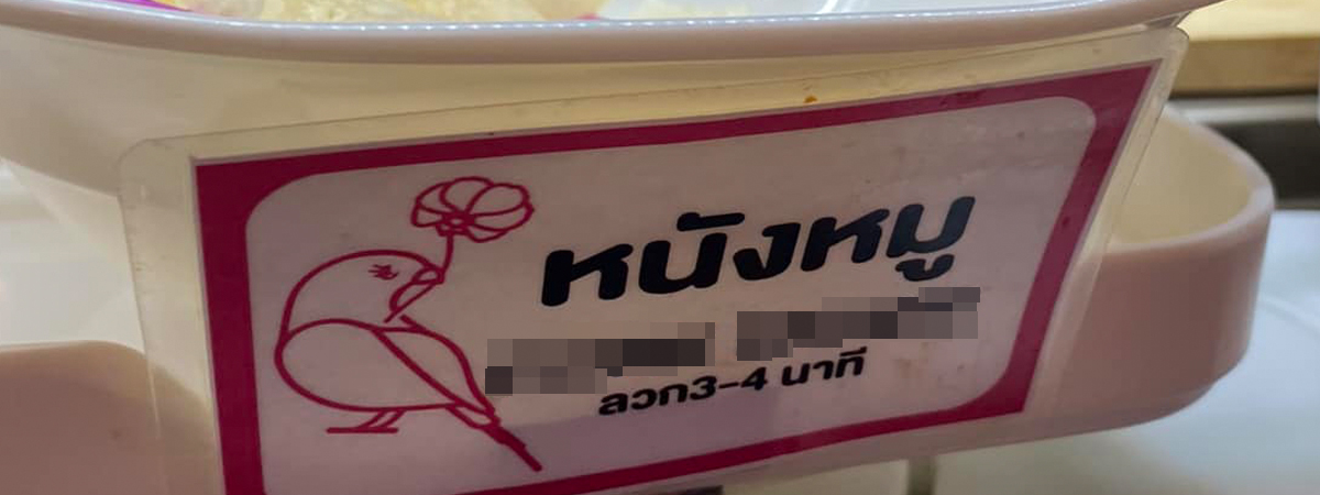 เฟซบุ๊ก Natthaphon Thanathiprat ได้โพสต์ในกลุ่ม TIT (This is Thailand) ซึ่งเป็นภาพตอนที่ไปร้านอาหารแห่งหนึ่ง แล้วเห็นป้ายชื่อเมนูแปะอยู่ตรงนั้นพอดี ชื่อภาษาไทยยังไม่เท่าไร มาพีคตรงชื่อภาษาอังกฤษนี่แหละ จากหนังหมูกลายเป็น Pork Movie งานนี้ชาวเน็ตคอมเมนต์แซวว่า หนังฉายกี่นาที และ ใครเป็นผู้กำกับ แถมชื่อเมนูภาษาอังกฤษยังเป็นแบบนี้อีกหลายเมนูด้วย ลูกค้าได้ขำลั่นร้านแน่ ๆ