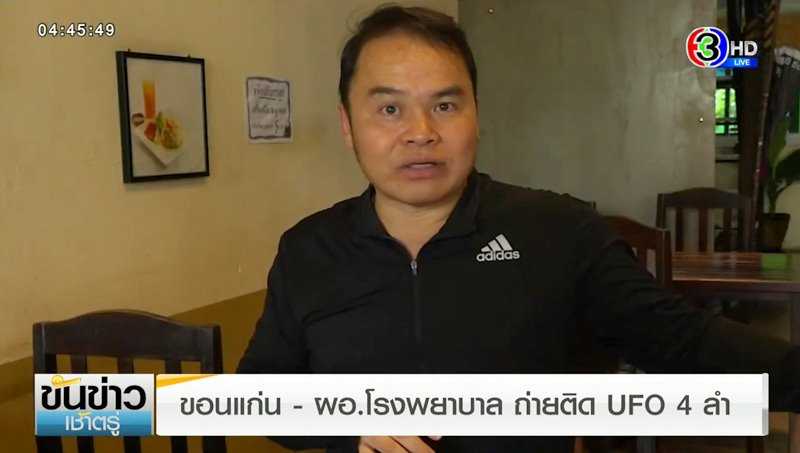 วันที่ 24 กันยายน 2566 ข่าวช่อง 3 รายงานว่า นายศุภโชค ผอ.รพ.สต. แห่งหนึ่งใน จ.ขอนแก่น เปิดเผยว่า สามารถถ่ายคลิปวัตถุคล้ายยานอวกาศมนุษย์ต่างดาว หรือ UFO ได้ ขณะที่กำลังลอยอยู่บนก้อนเมฆเหนือ อ.ชนบท จ.ขอนแก่น ลักษณะเหมือนยานอวกาศลำใหญ่ รูปร่างคล้ายปลากระเบน ลอยนิ่งอยู่เหนือก้อนเมฆฝนที่กำลังลอยตามแรงลม จากนั้นไม่นานได้มีวัตถุลักษณะดังกล่าว ปรากฏอีก 3 ลำ แต่จะมีขนาดเล็ก คล้ายลอยมาหายานลำใหญ่ ซึ่งคลิปดังกล่าวมีความยาว 1.13 นาที