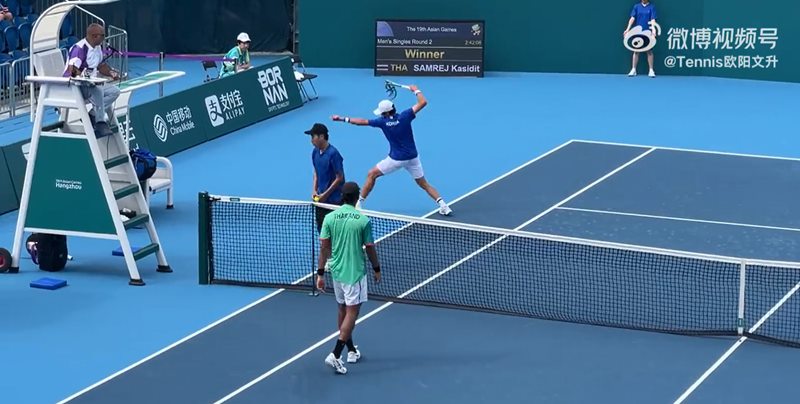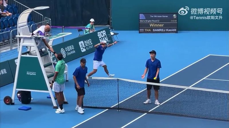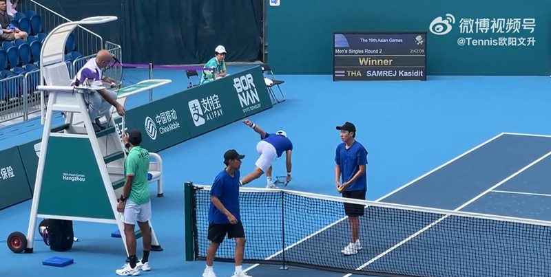 กลายเป็นประเด็นร้อนจากการแข่งขันเอเชียนเกมส์ ครั้งที่ 19 "หางโจวเกมส์" ในกีฬาเทนนิสชายซึ่ง บูม กษิดิศ สำเร็จ นักเทนนิสไทย มือ 636 ของโลก สามารถเอาชนะ ควอน ซุนวู นักกีฬาเกาหลีใต้ มือ 112 ของโลก ไปได้ 2-1 เซต ด้วยคะแนน 6-3, 5-7 และ 6-4 ซึ่งในช่วงเวลานี้เองที่เกาหลีใต้ต้องเผชิญเรื่องฉาวที่น่าอับอายซ้ำ เมื่อ ควอน ซุนวู ได้ฟาดไม้ของตัวเองจนพังยับ หลังพ่ายแพ้ให้กับคู่ต่อสู้ที่มีอันดับต่ำกว่าตัวเองกว่า 500 อันดับอย่างไม่คาดคิด