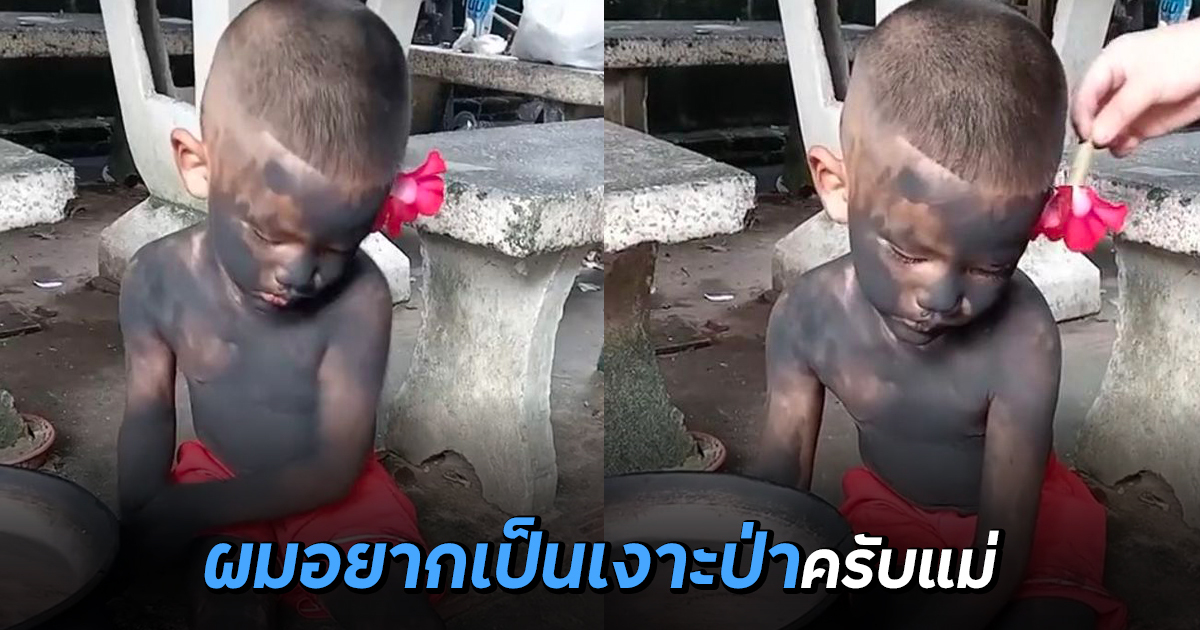 ผู้ใช้ TikTok @layya1932 ได้เผยภาพลูกชายจอมซน เอาขี้เขม่าจากก้นหม้อมาทาให้ตัวดำ เพราะตัวเองอยากเป็นเงาะป่า แถมยังใส่กางเกงแดง และเอาดอกไม้ทัดหู ให้เหมือนยิ่งขึ้นอีกด้วย พอแม่เห็นเท่านั้นแหละ ไม้เรียวในมือสั่นหนักมาก ไม่อยากนึกภาพตอนล้างตัวเลยจริง ๆ