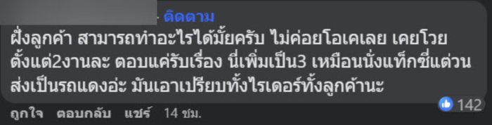 อีกความเห็นหนึ่งระบุว่า ขอมาพูดในตัวแทนไรเดอร์ คือ บริษัท มันกำหนดงาน แบช 3 มาใหม่ เลยทำให้ไรเดอร์ไปถึงลูกค้าช้ากว่าเดิม จึงอยากให้ ลูกค้าเข้าใจไรเดอร์หน่อย ไรเดอร์ไม่ได้อยากไปส่งช้าเลย บางทีร้านทำช้า บวกบางทีลูกค้าคนแรกกว่าจะลงมารับของก็นาน อยากให้ พี่ ๆ ที่สั่งผ่านแอปฯ เข้าใจไรเดอร์หน่อย