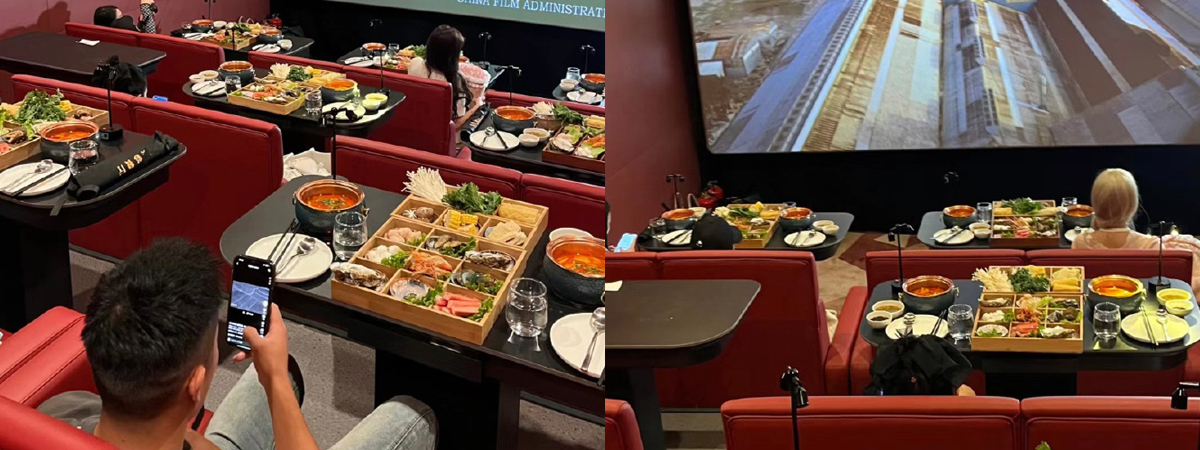 เว็บไซต์ Weibo จากจีน ได้เผยภาพโรงภาพยนตร์แห่งหนึ่งในจีน ได้จัดเตรียมอาหารชุดใหญ่ สำหรับลูกค้าที่มาดูหนัง โดยปกติเราจะกินป๊อปคอร์นกับน้ำดื่มเวลาดูหนัง แต่คราวนี้เล่นเสิร์ฟชาบูให้เลย ได้อิ่มท้องระหว่างดูหนังอย่างแน่นอน กลายเป็นภาพที่ได้รับความสนใจอย่างล้นหลามในตอนนี้