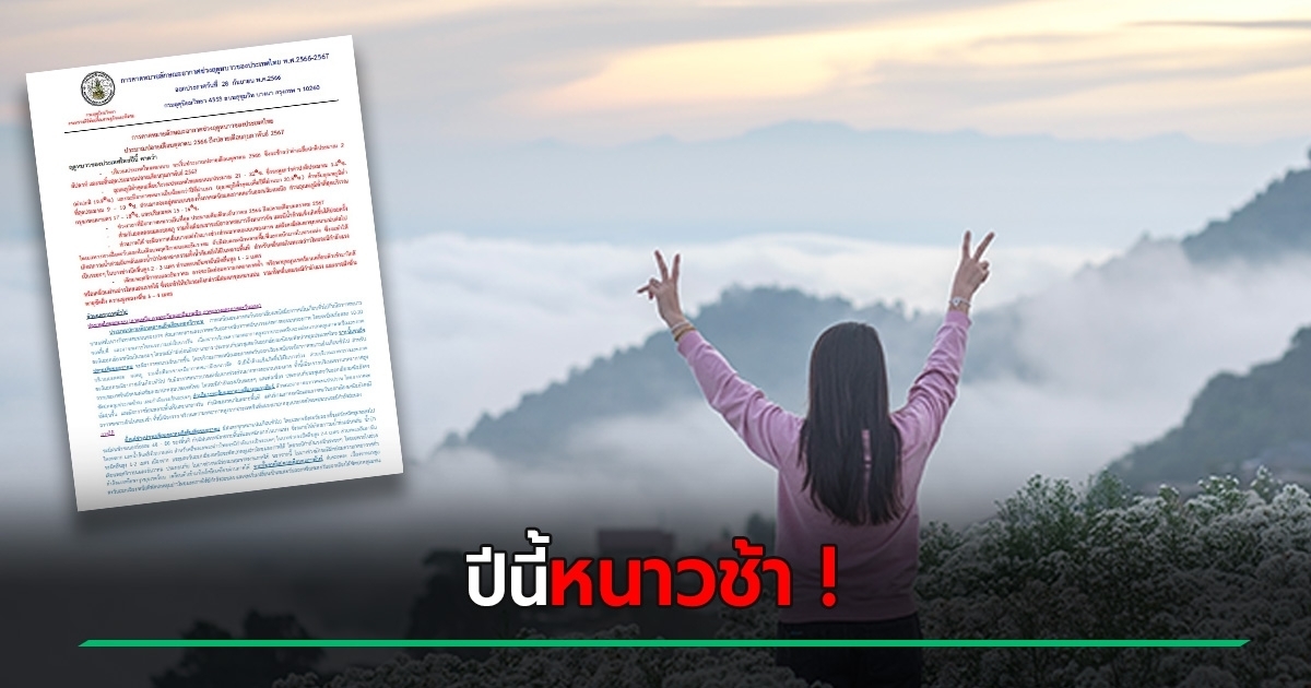 กรมอุตุนิยมวิทยา คาดฤดูหนาวของไทยปีนี้ มาช้ากว่าปกติประมาณ 2 สัปดาห์ จบที่ปลายเดือนกุมภาพันธ์ 2567 และหนาวน้อยกว่าปีที่แล้ว
