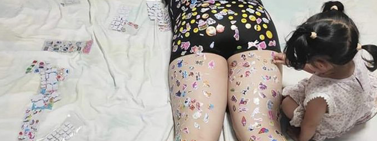 ผู้ใช้ Douyin @点说晚安 ได้เผยภาพจากประเทศจีน คุณพ่อท่านหนึ่งกับการใช้ชีวิตหลังมีลูกสาว ด้วยความที่ลูกอยากเล่นสติ๊กเกอร์ พ่อเลยยอมนอนลูกละเลงแปะสติ๊กเกอร์ทั้งตัว แปะจนแทบจะหมดทั้งแผ่นเลยทีเดียว ทั้งฮาและน่ารักจนกลายเป็นไวรัลดังทั่วเอเชีย