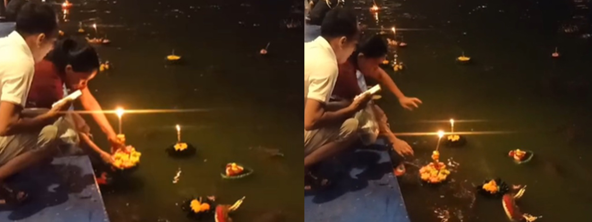 ควงคู่พากันไปลอยกระทงริมน้ำ กระทงยังไม่ทันได้ลอยน้ำ หายไปแค่พริบตาเดียว