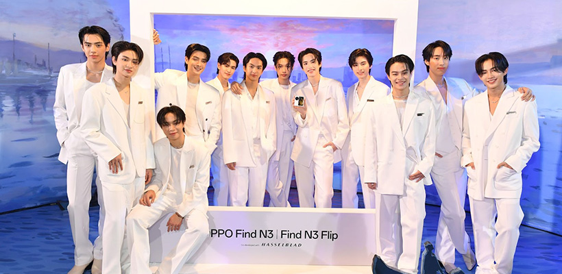 อีกหนึ่งดาวเด่นของงานที่ออร่าพุ่งกระจาย คือหนุ่มๆ ไอดอลหน้าใหม่ 789 DEBUT GROUP ทั้ง 12 คน ได้แก่ อลัน, มาร์ค, ขุนพล, ฮาร์ท, จินวุค, ไทย, เน็กซ์, ภู, คอปเปอร์, เอเอ, จั๋ง และภีม ที่ชื่นชมกับดีไซน์ของ OPPO Find N3 Flip "พวกผมเชื่อว่าสมาร์ตโฟนรุ่นนี้จะต้องถูกใจพี่ๆ เป็นพิเศษ เพราะว่ากล้องพอร์ตเทรตเทพมาก ถ่ายรูปพอร์ตเทรตลงโซเชียลได้แบบไม่อายใคร และที่สำคัญคือดีไซน์ด้านนอกดูแฟชั่นสุดๆ และน่ารักมาก โดยเฉพาะจอด้านนอกขนาดใหญ่ที่เลี้ยงสัตว์ 3D แบบ Interactive ได้ด้วย แล้วถ้าดูที่สีตัวเครื่องมีให้เลือกหลากหลายตามสไตล์แต่ละคน ทั้งสีทองดูหรูหรา, สีชมพูดูน่ารัก และสีดำดูเท่ เลือกไม่ถูกเลยทีเดียว"