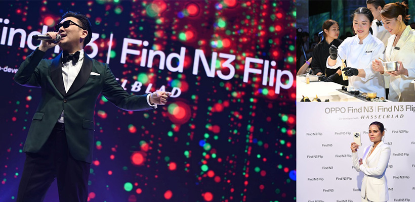 เรียกได้ว่างานนี้ ออปโป้ตอกย้ำจุดยืนในฐานะผู้นำกำหนดนิยามใหม่แห่งการพับ นำโดย OPPO Find N3 เบา บาง ทรงพลัง สมาร์ตโฟนจอพับระดับแฟลกชิปสำหรับกลุ่มคนที่มีไลฟ์สไตล์ Bleisure ทำงานและท่องเที่ยวในเวลาเดียวกัน รุ่นนี้จึงมาพร้อมกับประสิทธิภาพที่ทรงพลังด้วยนวัตกรรมขั้นสุดในทุกด้าน ตัวเครื่องมีน้ำหนักเบาเพียง 239 กรัม บางเพียง 5.8 มิลลิเมตรเมื่อกางออก หน้าจอด้านนอกขนาด 6.3 นิ้ว เมื่อกางออกจะมีขนาดถึง 7.8 นิ้ว สามารถใช้งานได้ด้วยมือเดียว เพื่อตอบโจทย์การใช้งานและถือได้สะดวก ที่มาของตัวเครื่องที่บางและเบาในระดับนี้คือการอัปเกรดระบบบานพับ Flexion Hinge ในรุ่นที่ 3 มีระบบกล้องหลัง 3 ตัวระดับโปร มาพร้อมกล้อง Periscope Telephoto และฟีเจอร์ Hasselblad Portrait Mode เพื่อสร้างผลงานภาพระดับมาสเตอร์พีซ รวมถึงมีระบบปฏิบัติการ Color OS เปิดใช้งานมุมมองแบบไร้ขอบเขต (Boundless View) เปิดแอปแบบเต็มจอสูงสุด 3 แอปบนหน้าจอ 7.8 นิ้วเพื่อรองรับการทำงานที่หลากหลายในเวลาเดียวกัน มาพร้อมขุมพลัง Qualcomm Snapdragon 8 Gen 2 และแบตเตอรี่ขนาดใหญ่ 4,800 mAh ที่รองรับการชาร์จไว 67W SUPERVOOC
