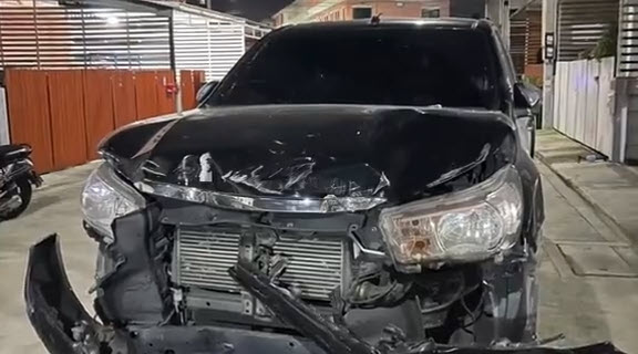 ส่วนรถก็อยู่ในสภาพกันชนหน้าพังยับเช่นกัน
