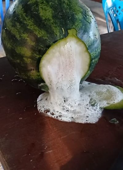 ปอกแตงโมไม่เป็นสีแดงสด กลับมีฟองขาว ๆ พุ่งออกมาส่งกลิ่นเน่าเหม็น สงสัยมันคืออะไร พอมีคนตอบดี ๆ สุดท้ายกลายเป็น 18+ คิดดีไม่ได้เลย