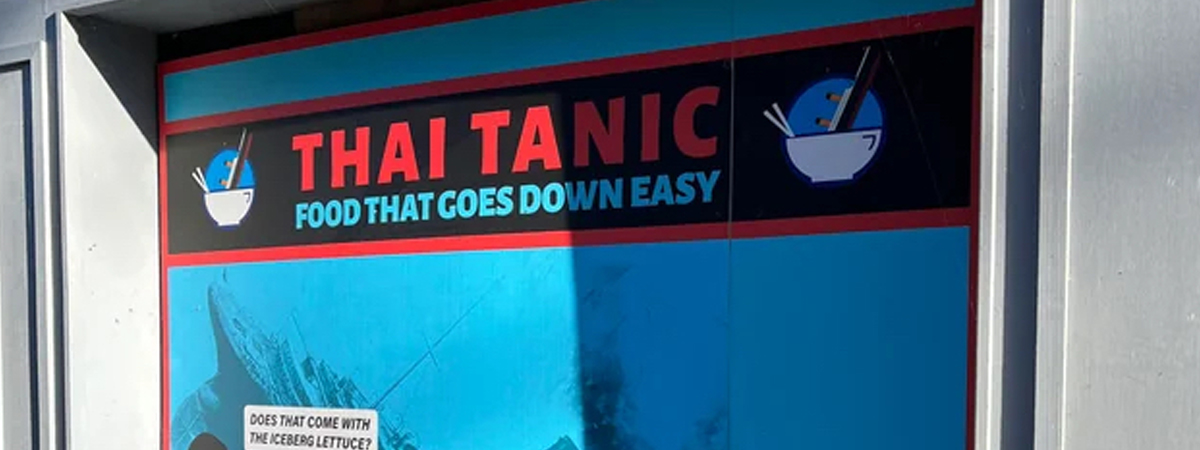 เฟซบุ๊ก Partage d'images ได้เผยภาพบริเวณหน้าร้านก๋วยเตี๋ยว ที่มาเปิดร้านในประเทศไอร์แลนด์ ยิ่งไปกว่านั้นชื่อร้านต่างเป็นที่สะดุดตาของใครหลายคน มีรูปชามก๋วยเตี๋ยวเล็ก ๆ พร้อมชื่อร้านว่า Thai Tanic ดูแล้วรู้เลยว่าเอาแรงบันดาลใจมาจากไหน แต่ก็มีชาวเน็ตบางส่วนคอมเมนต์ว่า ไม่ควรนำชื่อเรือที่เคยเกิดเหตุการณ์โศกนาฏกรรม มาตั้งชื่อร้านเพื่อความสนุก