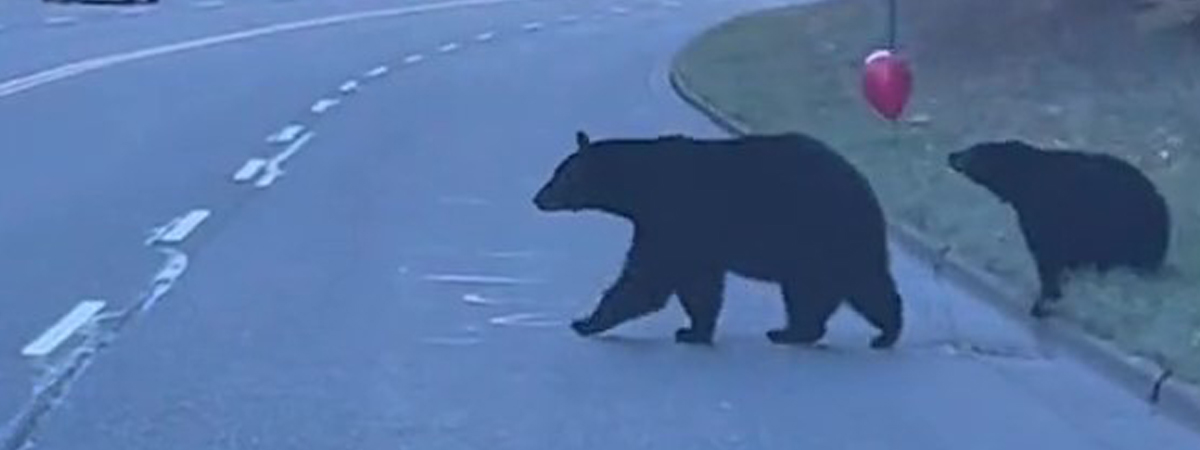 เอ็นดูทั้งโซเชียล แม่หมีพาลูกข้ามถนน ยังไม่ทันได้ข้าม ลูกไม่สนใจแม่เลยสักนิด