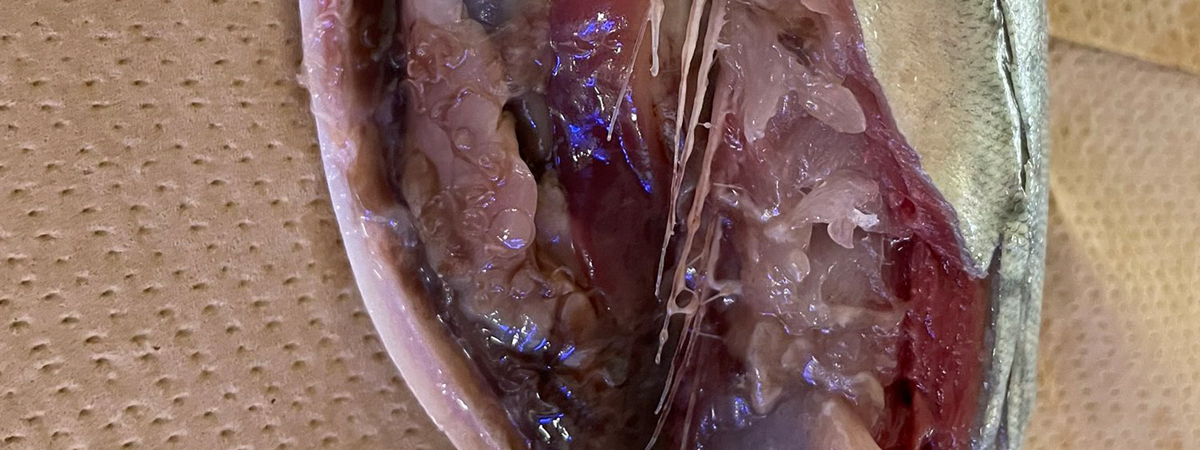 พยาธิที่เห็นอยู่ในท้องปลา เป็นพยาธิอะนิซาคิส (Anisakis) พบในปลาทะเลเขตอบอุ่นและเขตร้อน หากพยาธิชนิดนี้เข้าสู่ร่างกายมนุษย์ จะทำให้กระเพาะอาหารและลำไส้เป็นแผล และเกิดอาการปวดท้องขั้นรุนแรง