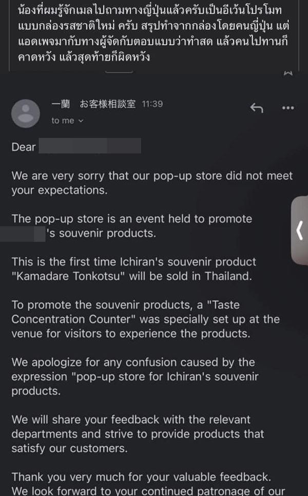 ดราม่าราเมนชื่อดังในญี่ปุ่น นำมาขายในไทย จำกัดออร์เดอร์ต่อวัน คนไทยดีใจนึกว่าจะได้ทานราเมนแบบเดียวกับที่ญี่ปุ่น ผลที่ได้คนละเรื่อง จนมีคนอีเมลไปถาม และได้รับทราบอีกด้านของเรื่องนี้ อ้าว...
