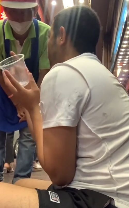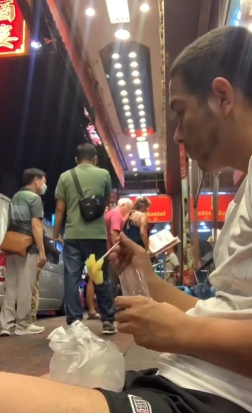 จากนั้นเขาก็นั่งวินมอเตอร์ไซค์รับจ้างไปขึ้นรถไฟฟ้าลงที่เยาวราชในช่วงกลางคืน พร้อมจับจองมุมหนึ่งเพื่อนั่งขอทานเอาไว้ มือถือแก้วใสรอรับเงินจากคนที่เดินผ่านไปผ่านมา มีคนให้บ้าง ไม่ให้บ้าง แต่โดยรวมก็ถือว่ามีคนให้เยอะอยู่