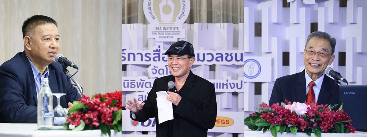 นายประสงค์ เลิศรัตนวิสุทธิ์ ผู้อำนวยการบริหารสถาบันอิศรา พร้อมด้วย นายชวรงค์ ลิมป์ปัทมปาณี ผู้อำนวยการหลักสูตร และนางสาวอมรรัตน์ มหิทธิรุกข์ ผู้จัดการหลักสูตร ให้การต้อนรับ นายมานิจ สุขสมจิตร ประธานมูลนิธิพัฒนาสื่อมวลชนแห่งประเทศไทย นางสาววิมลพรรณ ปีตธวัชชัย ประธานกรรมการบริหาร สถาบันอิศรา นายสมหมาย ปาริจฉัตต์ ประธานคณะกรรมการหลักสูตร บยสส. รุ่นที่ 3 และนายวิชิต เอื้ออารีวรกุล ประธานผู้อบรมหลักสูตร บยสส. รุ่นที่ 1 เนื่องในโอกาสเปิดหลักสูตรผู้บริหารยุทธศาสตร์การสื่อสารมวลชนระดับสูง (บยสส.) รุ่นที่ 3 จัดโดยสถาบันอิศรา มูลนิธิพัฒนาสื่อมวลชนแห่งประเทศ เมื่อวันเสาร์ที่ 18 พฤศจิกายน 2566 ณ โรงแรม ดิ เอมเมอรัลด์ กรุงเทพฯ ถนนรัชดาภิเษก