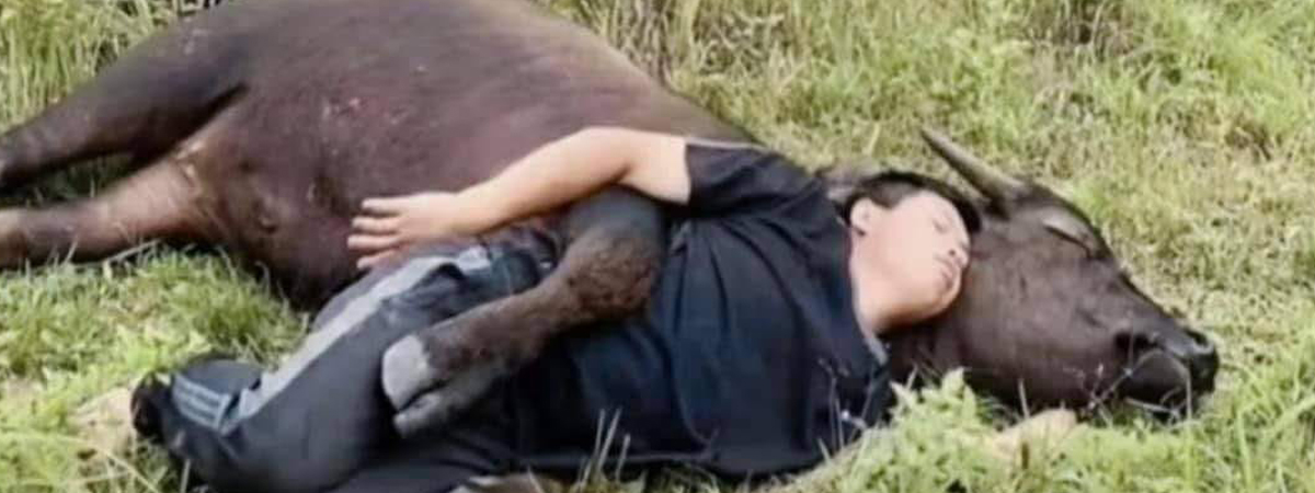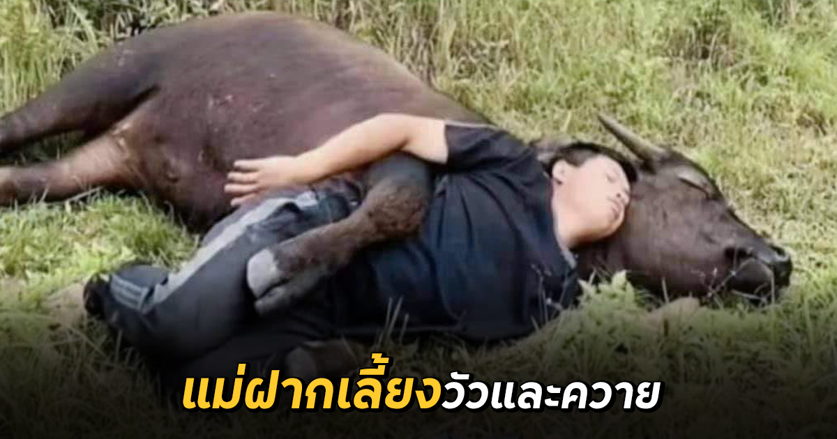 เฟซบุ๊ก Prawet Yapang ได้โพสต์ในกลุ่ม อาณาจักรสัตว์โลก มีม&สาระ By ตามติดชีวิต Animal ซึ่งเป็นภาพตอนที่คุณแม่ฝากให้ลูกเลี้ยงวัวและควาย ระหว่างที่ออกไปข้างนอก ลูกก็ตั้งใจเลี้ยงตามที่แม่สั่ง ตั้งใจจนพาน้องนอนตรงนั้นเลยทีเดียว ถ้าแม่เห็นได้โดนทำโทษแน่ ๆ ชาวเน็ตพากันขำและเอ็นดูกันทั้งโซเชียล