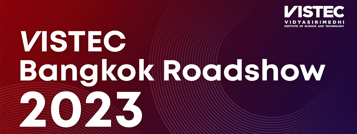 Save the date ! สถาบันวิทยสิริเมธี (VISTEC) ขอเชิญทุกท่านที่สนใจเข้าศึกษาต่อในระดับปริญญาโทและเอก เข้าร่วมงาน “VISTEC Bangkok Roadshow 2023” ในวันศุกร์ที่ 8 ธันวาคม 2566 เวลา 09.30 น. เป็นต้นไป ณ ห้อง Auditorium ชั้น 2 และบริเวณโถงกลางชั้น 1 อาคาร ปตท. สำนักงานใหญ่ กรุงเทพมหานคร โดยภายในงานจะได้พบกับ