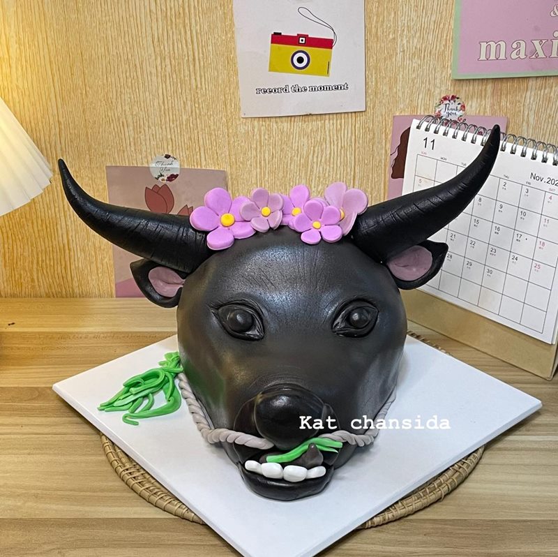 จากกรณี ผู้ใช้เฟซบุ๊กชื่อ Kat Chansida โพสต์เล่าเรื่องราวลงในกลุ่ม เบเกอรี่พอเพียง เป็นภาพของเค้กรูปหัวควายตัวเล็ก ๆ ที่ถูกทำขึ้นอย่างสวยงาม พร้อมแชร์ประสบการณ์ทำเค้กตามที่ลูกค้าบอก แต่เมื่อทำเสร็จลูกค้าไม่กล้ารับเนื่องจากเหมือนเกินไปจนลูกค้ากลัว โดยระบุข้อความว่า