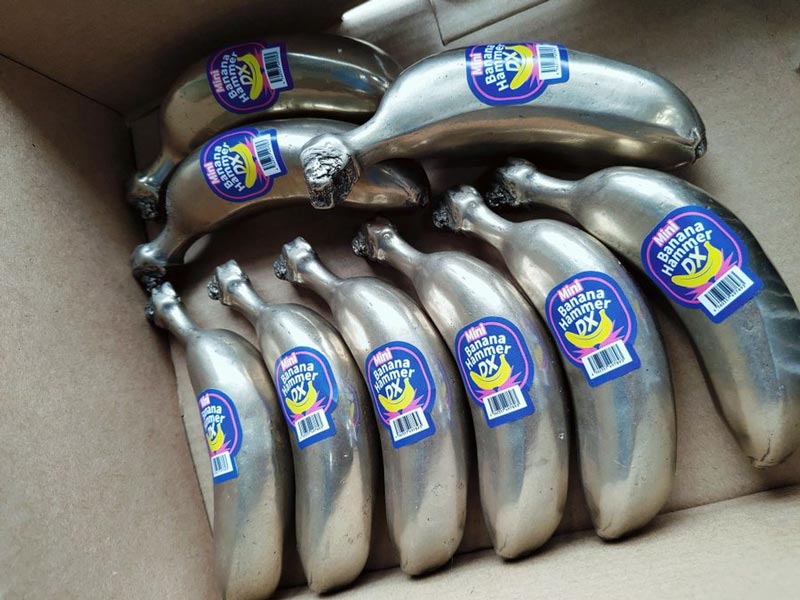 ค้อนกล้วยเหล็กทำจากโลหะทั้งชิ้น แต่ละลูกมีขนาดและรูปร่างที่เท่ากัน ความยาวรวมประมาณ 20 เซนติเมตร และหนักประมาณ 1.5 กิโลกรัม ส่วนราคาอยู่ที่ลูกละ 11,877 เยน หรือราว 2,800 บาท (ตามอัตราแลกเปลี่ยนปัจจุบัน) หากใครสนใจก็สามารถไปสั่งซื้อได้เลย