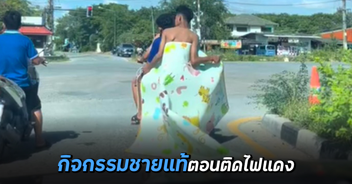 ในระหว่างที่รถติดไฟเเดง ดันมาเจอวัยรุ่นทำกิจกรรมแบบชายแท้ พีคสุดคือคนซ้อนท้าย