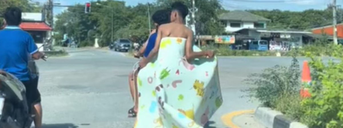 ผู้ใช้ TikTok @tonmotor66 ได้เผยภาพตอนที่รถกำลังติดไฟแดง ในขณะที่รอสัญญาณไฟเขียว เห็นแก๊งมอเตอร์ไซค์คันข้างหน้าซ้อนสาม ไม่สวมหมวกกันน็อก แถมคนซ้อนคนสุดท้ายใส่ชุดกระโปรงยาวมาอีกด้วย ก่อนที่จะฝ่าไฟแดงรีบซิ่งมอเตอร์ไซค์ ไม่รู้ว่ารีบไปประกวดหรืออะไรรึเปล่า แต่ที่แน่ ๆ ถ้าตำรวจเห็น มีแววได้โดนหลายกระทงแน่ ๆ