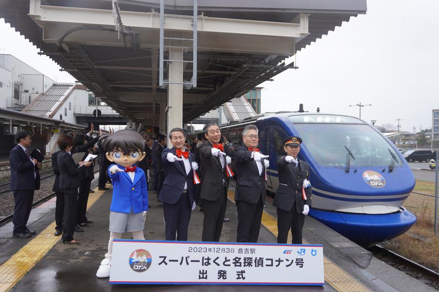 สำนักข่าวซินหัว รายงาน จังหวัดทตโตริ ที่ตั้งอยู่บริเวณภูมิภาคชูโงกุของประญี่ปุ่น เปิดตัวรถไฟด่วน รถไฟยอดนักสืบจิ๋วโคนัน ที่สถานีคุราโยชิ เพื่อดูดนักท่องเที่ยวให้เดินทางมาเยือนจังหวัดดังกล่าว ซึ่งตัวรถไฟและภายในห้องโดยสารถูกตกแต่งด้วยลวดลายตัวละครจากการ์ตูนมังงะชื่อดังอย่าง ยอดนักสืบจิ๋วโคนัน สำหรับรถไฟขบวนสายนี้จะวิ่งเชื่อมต่อจังหวัดทตโตริ (บ้านเกิดของโกโช อาโอยามะ นักเขียนเจ้าของผลงานการ์ตูน โคนัน) กับเขตเคฮันชิง ซึ่งครอบคลุมหลายเมืองสำคัญของญี่ปุ่น ไม่ว่าจะเป็น โกเบ โอซาก้า และเกียวโต เป็นต้น