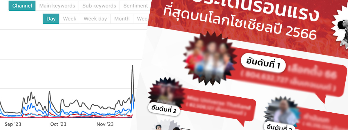 ก้าวเข้าสู่เดือนสุดท้ายของปี 2566 เป็นประจำทุกปีที่ไวซ์ไซท์จะมาจัดอันดับกระแสไวรัล ข่าวฮอตฮิต ดราม่า รวมถึงเหตุการณ์ต่าง ๆ บนโลกโซเชียลตลอดปี โดยทำการรวบรวมข้อมูลผ่านเครื่องมือ Social Listening หรือ ZOCIAL EYE ตั้งแต่วันที่ 1 มกราคม - 15 ธันวาคม 2566