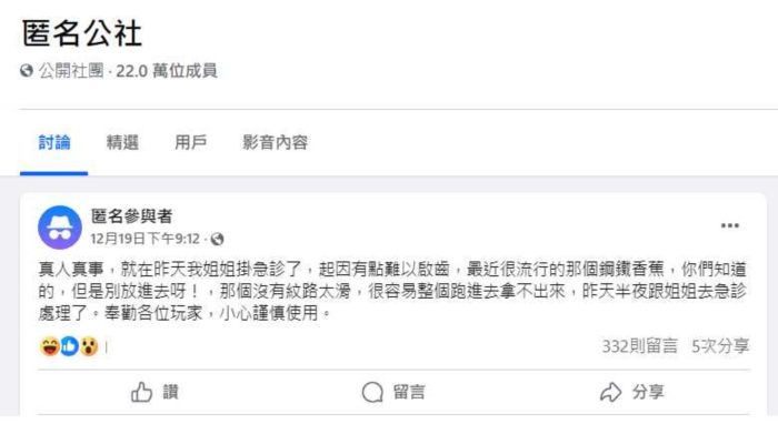 หนุ่มรายนี้เผยว่า พี่สาวของเขาต้องไปห้องฉุกเฉินตอนกลางดึก ด้วยเหตุผลที่ยากจะอธิบาย "พวกคุณรู้เรื่องกล้วยเหล็กที่ได้รับความนิยมมากในช่วงนี้ไหม แต่อย่ายัดเข้าไปจริง ๆ นะ"