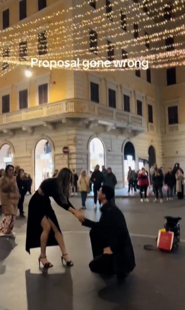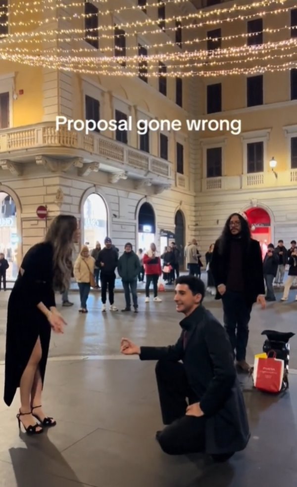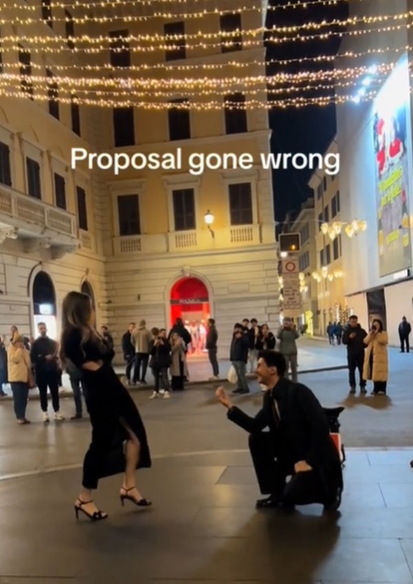 เมื่อวันที่ 28 ธันวาคม 2566 เว็บไซต์นิวยอร์กโพสต์ เผยว่า มีคลิปวิดีโอการขอแต่งงานของหนุ่มรายหนึ่งในอิตาลี ถูกแชร์เป็นที่ถกเถียงวิพากษ์วิจารณ์บนโลกออนไลน์ เมื่อฝ่ายชายทำเซอร์ไพรส์คุกเข่าขอหญิงสาวแต่งงานในกรุงโรม สถานที่ซึ่งอบอวลไปด้วยบรรยากาศแสนโรแมนติก มีบทเพลงขับขานเบื้องหลังและผู้คนรายล้อมเป็นพยาน ชวนให้รู้สึกต้องมนต์รัก แต่ปรากฏว่าบทสรุปกลับกลายเป็นฉากที่ไม่น่าประทับใจอย่างคาดไม่ถึง