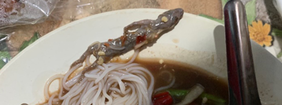 งานนี้อ้วกแทบพุ่ง สาวซื้อส้มตำกุ้งสด กำลังจะเทกิน เจอของแถมแบบตัวเป็น ๆ