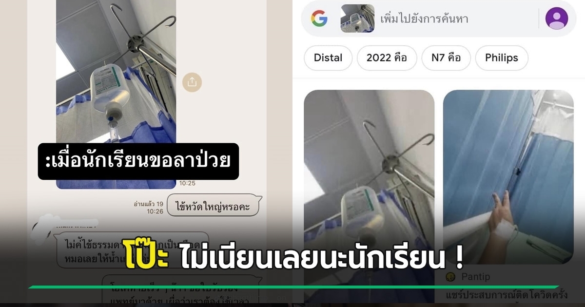นักเรียนจะขอลาป่วย บอกว่าเป็นไข้หวัด อาเจียนเป็นเลือด ด้านคุณครูก็ใจดีอวยพรให้หายไว ๆ แต่แล้วกลับเอ๊ะในใจจนเอารูปไปค้นดู โป๊ะแตกเลย...