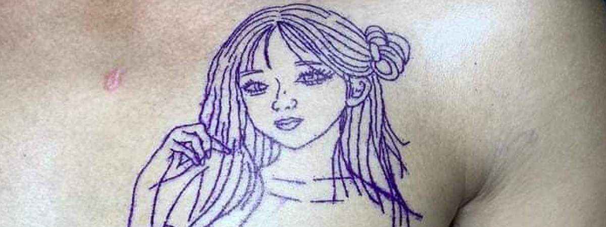 ไอเดียเข้าท่า อยากสักลายสาวเซ็กซี่ไว้ตรงอกข้างขวา เลยวาดลายให้ช่างสักด้วยตัวเอง