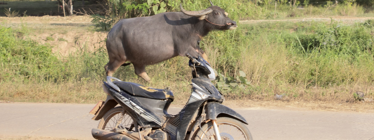 มุมเป๊ะได้อีก แวบแรกนึกว่าน้องควายขี่มอเตอร์ไซค์ พอมองดี ๆ ทำชาวเน็ตฮาลั่น