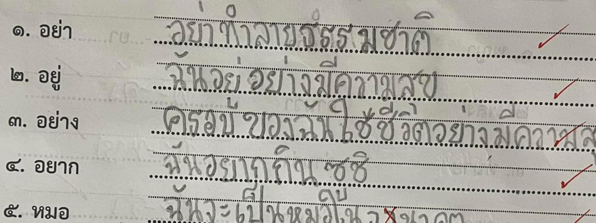 ส่องการบ้านเด็ก ป.3 แต่งประโยคภาษาไทย พอเห็นคำตอบที่เขียนมีฮา