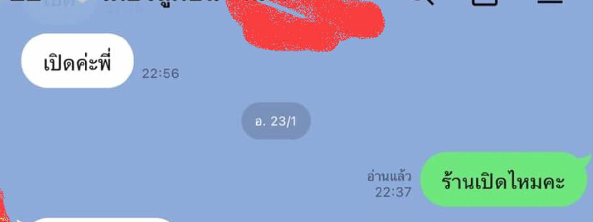 เฟซบุ๊ก Time Chayaphon ได้เผยภาพแชตตอนสั่งก๋วยเตี๋ยวกับร้านแห่งหนึ่ง ก่อนสั่งมักจะถามทุกครั้งว่าวันนี้ร้านเปิดไหม บางวันก็เล่นสั่งแบบดื้อ ๆ เลย สิ่งที่ได้กลับมาจากทางร้านนั้น มักจะตอบกลับว่า ร้านปิดตลอดเวลา คนที่อยากกินก๋วยเตี๋ยวคงได้เฟลไปตาม ๆ กัน