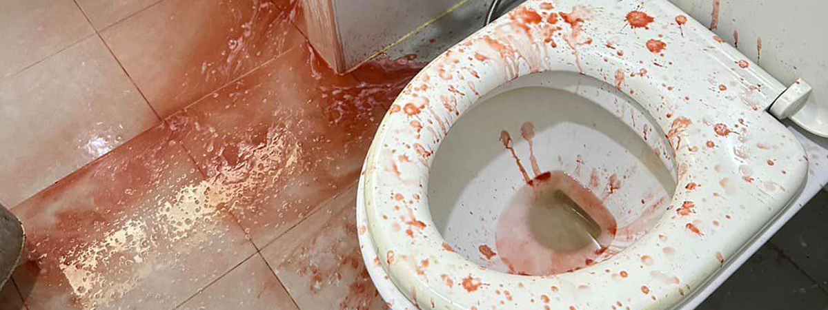 นึกว่าโดนฆ่าในห้องน้ำ หนุ่มเกิดอาการช็อก เห็นคราบเลือดทั่วห้องน้ำ ก่อนรู้ความจริงจากภรรยา
