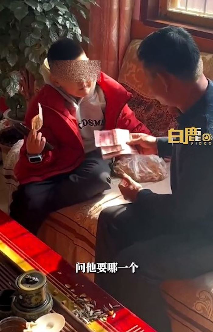 แต่ไม่คิดว่าตอนนั้น เด็กชายกลับเลือกที่จะหยิบธนบัตร 20 หยวน ทำให้พ่อที่ยืนดูอยู่ถึงกับตะลึง ในตอนนั้นเขาคิดว่าลูกชายช่างเป็นเด็กที่โง่มาก และเยาะเย้ยลูกชาย อย่างไรก็ตาม เมื่อเขาถามเหตุผลที่ลูกชายเลือกรับเงินจำนวนเล็กน้อยเป็นอั่งเปา ลูกชายกลับตอบอย่างโกรธ ๆ ว่า "ผมมาหาคุณปู่ ไม่ได้มาเอาเงิน"