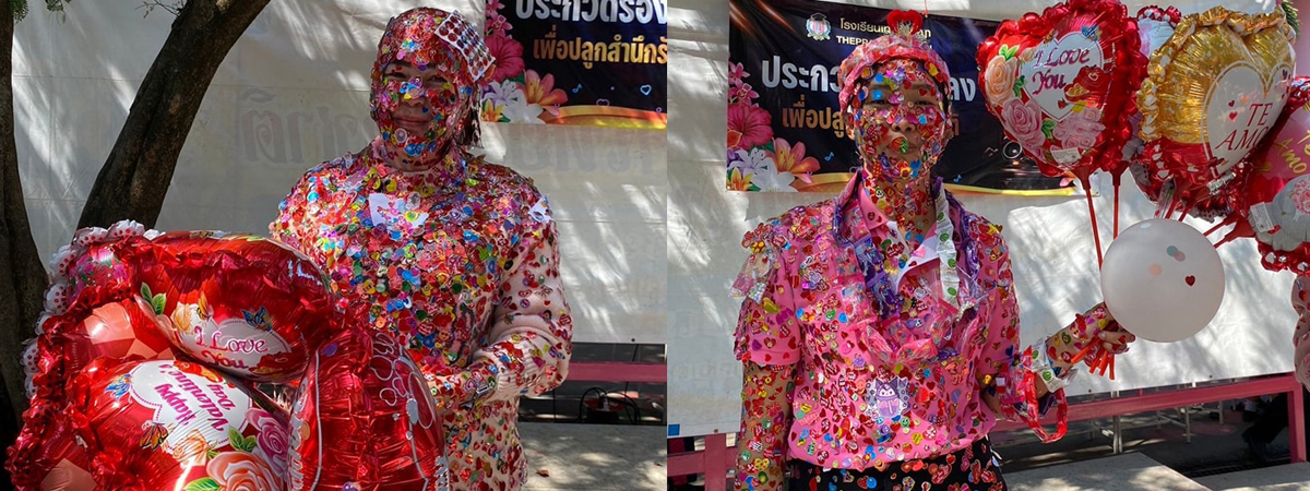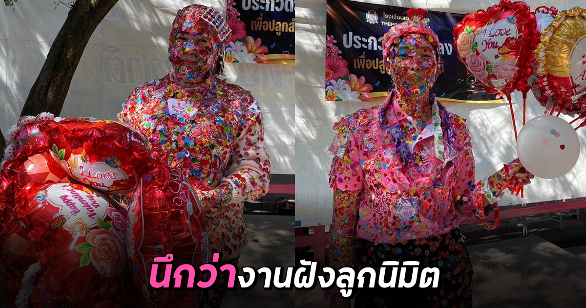 ครูได้รับความรักจากนักเรียนท่วมท้น แปะสติ๊กเกอร์หัวใจให้ จากงานวาเลนไทน์ สู่งานฝังลูกนิมิต