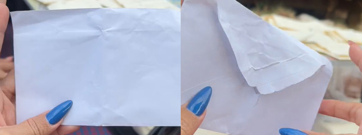 ผู้ใช้ TikTok @jittree.kid ได้เผยภาพตอนแกะซองของแขกที่ร่วมทำบุญ ความพีคอยู่ที่ซองนี้แหละ ในระหว่างแกะ เห็นกระดาษอยู่ในซอง ก็อดสงสัยไม่ได้ว่า แขกท่านนี้ใส่กระดาษเปล่ามาทำไม พอเอาออกมาดู เขียนเลข 200 ใส่กระดาษซะงั้น ใจอยากช่วยทำบุญ แต่ไม่มีเงิน เลยเขียนใส่กระดาษมาให้ 200 แทน ชาวเน็ตพากันขำสนั่นโซเชียล