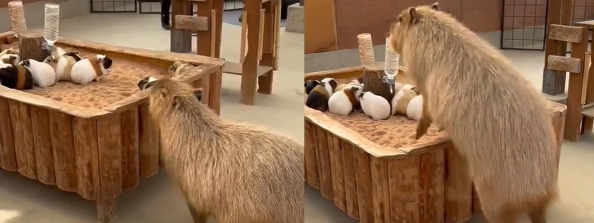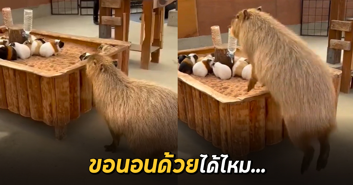 ผู้ใช้ TikTok @hicapybara ได้เผยภาพคาปิบารายักษ์ในสวนสัตว์ เห็นหนูกินนี่พิกอยู่กันเป็นฝูง ในใจคงคิดแหละว่าหน้าตาเราคล้ายกัน อาจจะคิดว่าเป็นพวกเดียวกันก็ได้ อยากไปร่วมวงนอนกับเขาด้วย แต่สิ่งที่เจอนั้น เหล่ากินนี่พิกหนีกันวงแตกกระเจิง ไม่รู้จะขำหรือสงสารดี