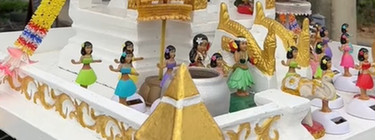 ผู้ใช้ TikTok @kt_hairserum_by_kety ได้เผยภาพตุ๊กตานางรำแบบใหม่ เอามาตั้งที่ศาลตายาย ซึ่งเป็นตุ๊กตาโซลาร์เซลล์ สามารถส่ายเองได้ เจ้าของยืนยันท่านชอบแน่ เพราะเอาไปตั้งปุ๊บท่านมาเข้าฝันทันที ชาวเน็ตพากันแซวว่า นี่มันตุ๊กตานางรำ 5G ชัด ๆ พร้อมกับถามว่า งวดนี้ได้เลขอะไร
