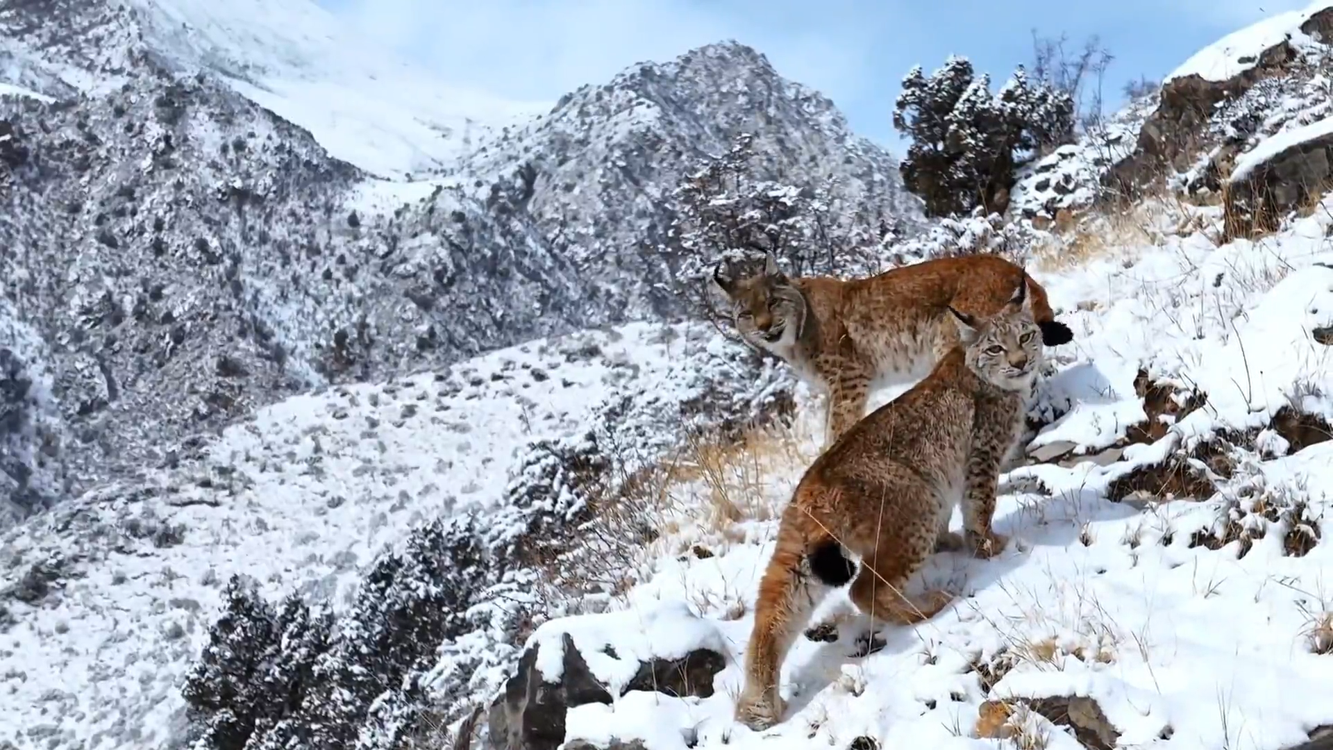 โดยภาพ แมวสกุลลิงซ์ ทั้งสองถูกบันทึกได้ ขณะกำลังเดินลัดเลาะปีนป่ายเนินเขาและล่าเหยื่ออย่างสบายใจ โดยตัวหนึ่งสามารถตะครุบเหยื่อสำเร็จและเพลิดเพลินกับอาหารอย่างเอร็ดอร่อยของมัน