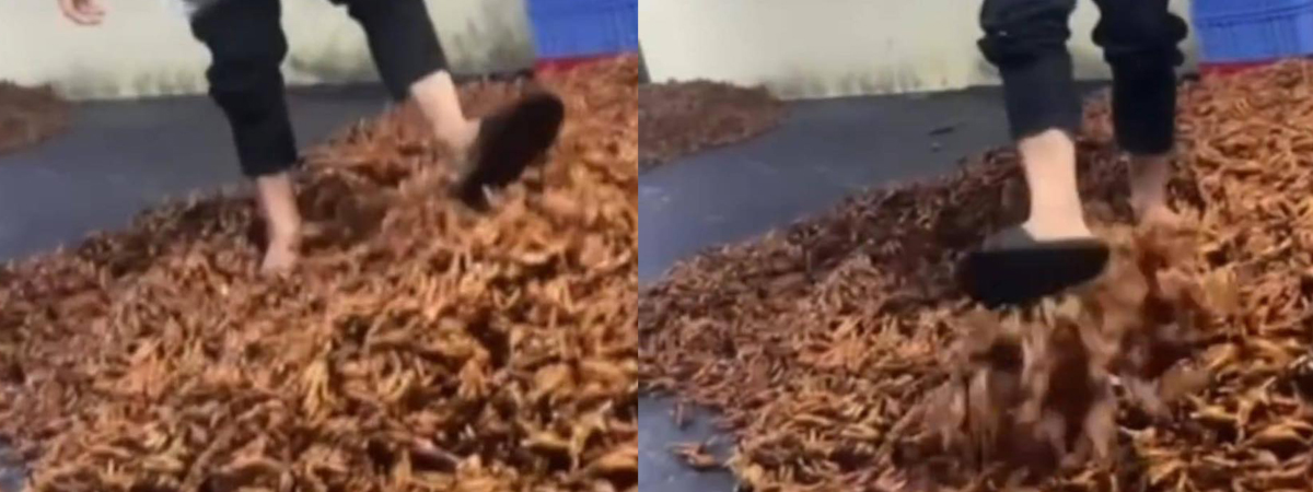 เฟซบุ๊กเพจ Khong So Cho ได้เผยภาพโรงงานทำตีนไก่เผ็ดแห่งหนึ่งในเวียดนาม กับขั้นตอนที่ต้องนำตีนไก่เผ็ดใส่ในบรรจุห่อ แต่ก่อนที่จะไปถึงขั้นตอนนั้น ต้องนำตีนไก่เผ็ดเทกองไว้ที่พื้น แล้วมีคนงานใช้รองเท้าแตะเหยียบย่ำทั่ว ๆ ตีนไก่ ใครที่อยากกินตีนไก่เผ็ด ได้เปลี่ยนความคิดใหม่แน่นอน